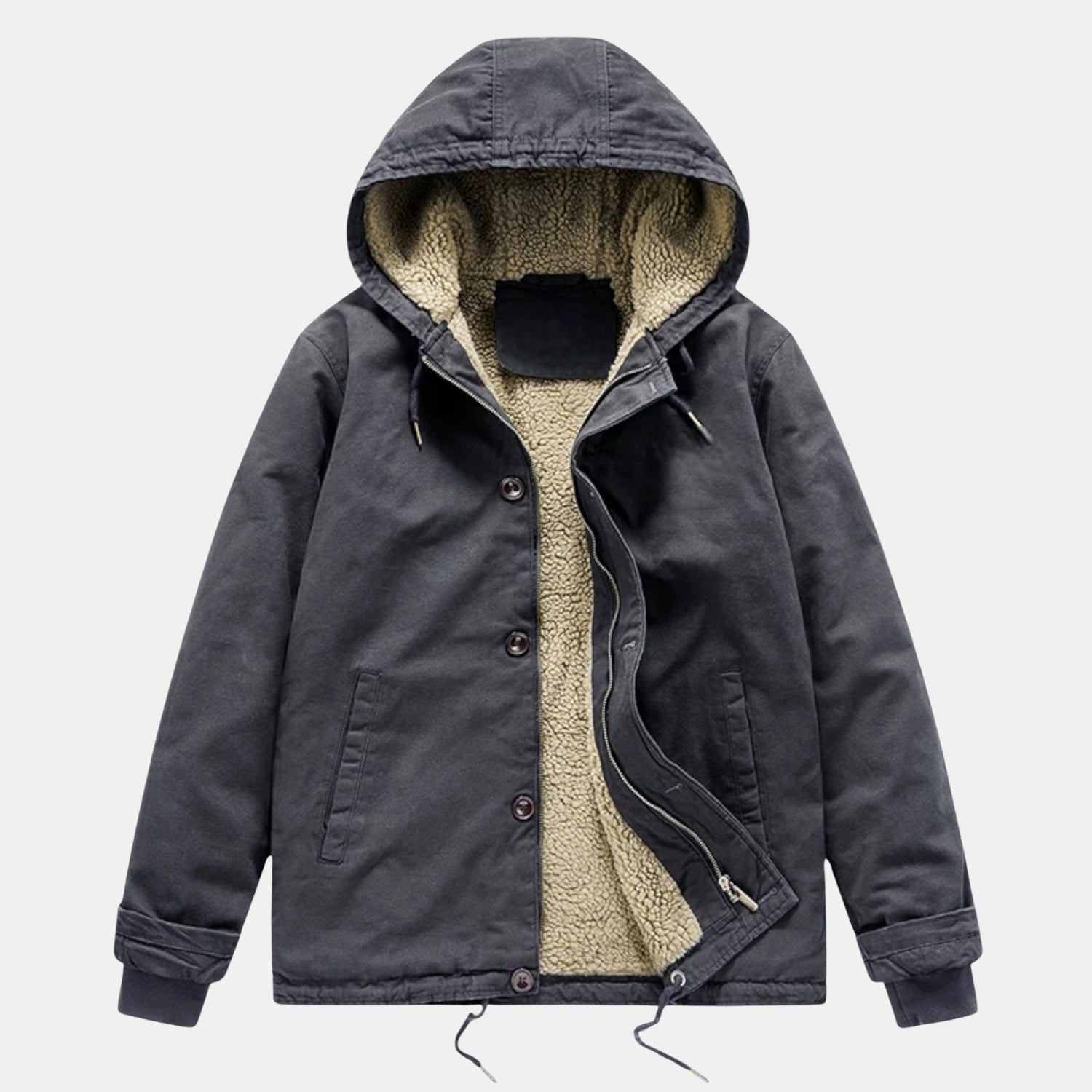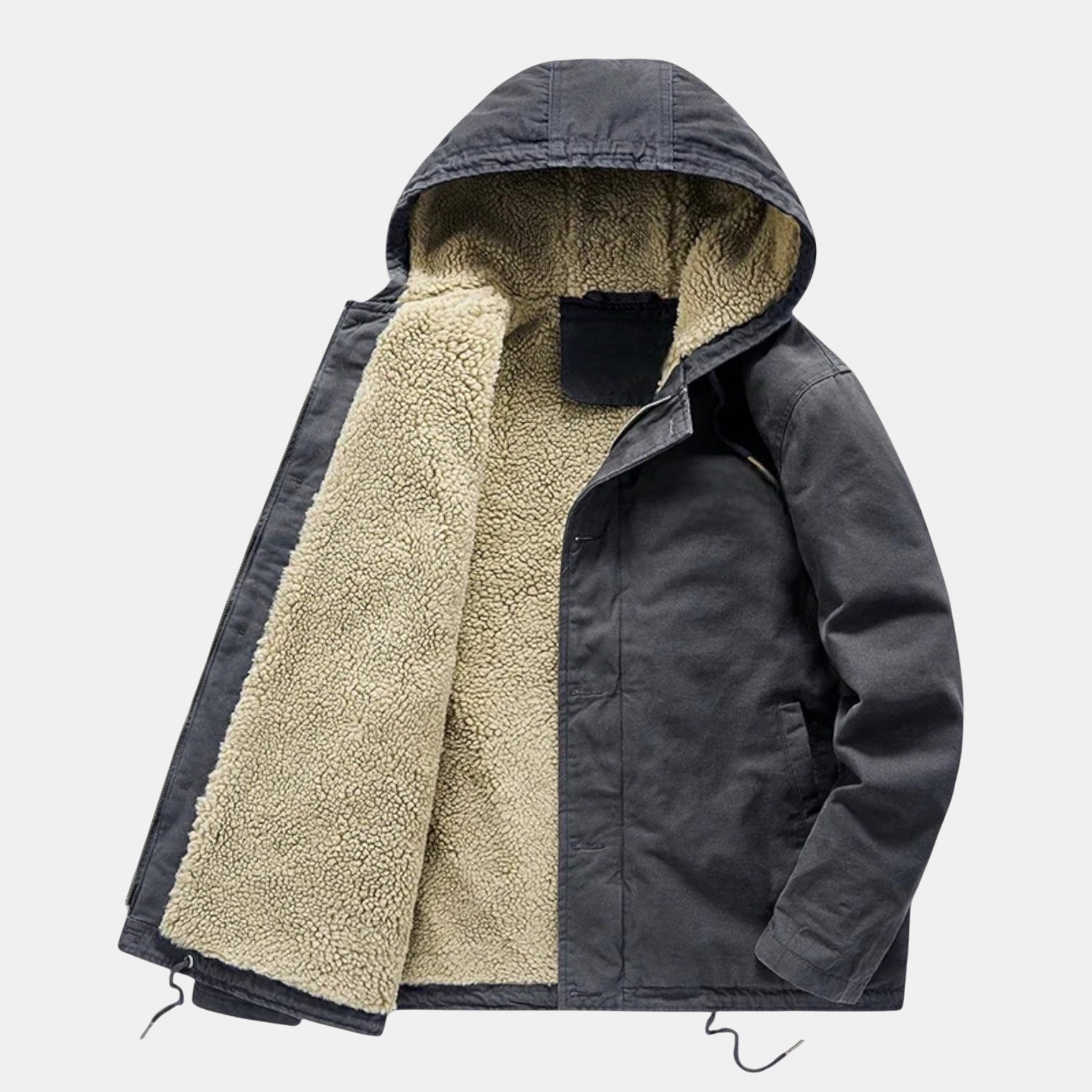 Herren Lammfleece-Wintermantel mit Kapuze – Warmer Gefütterter Wintermantel
