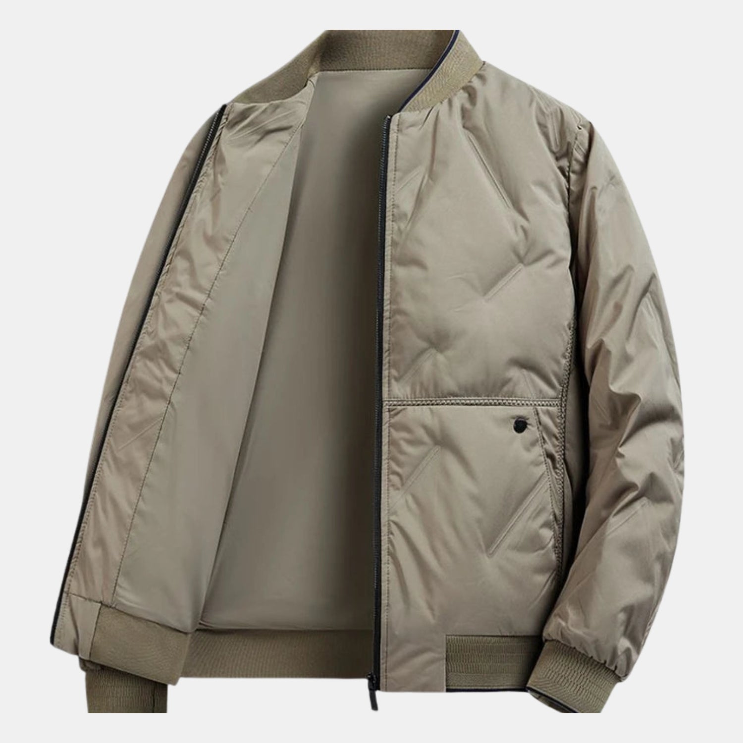 Dezente Steppnähte und sauber verarbeitete Linien verleihen der Jacke eine moderne, gepflegte Optik, die sich mühelos in Freizeit- und Alltagslooks integrieren lässt. Praktische Seitentaschen mit Druckknopf bieten sicheren Stauraum für wichtige Essentials und unterstreichen das funktionale Design.